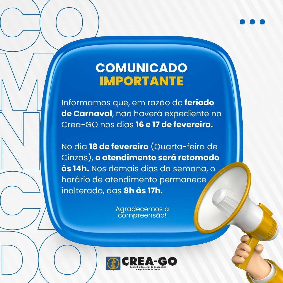 Agora você pode fazer o agendamento de seu atendimento no Crea-GO pelo site. Clique aqui e confira os horários disponíveis em tempo real.